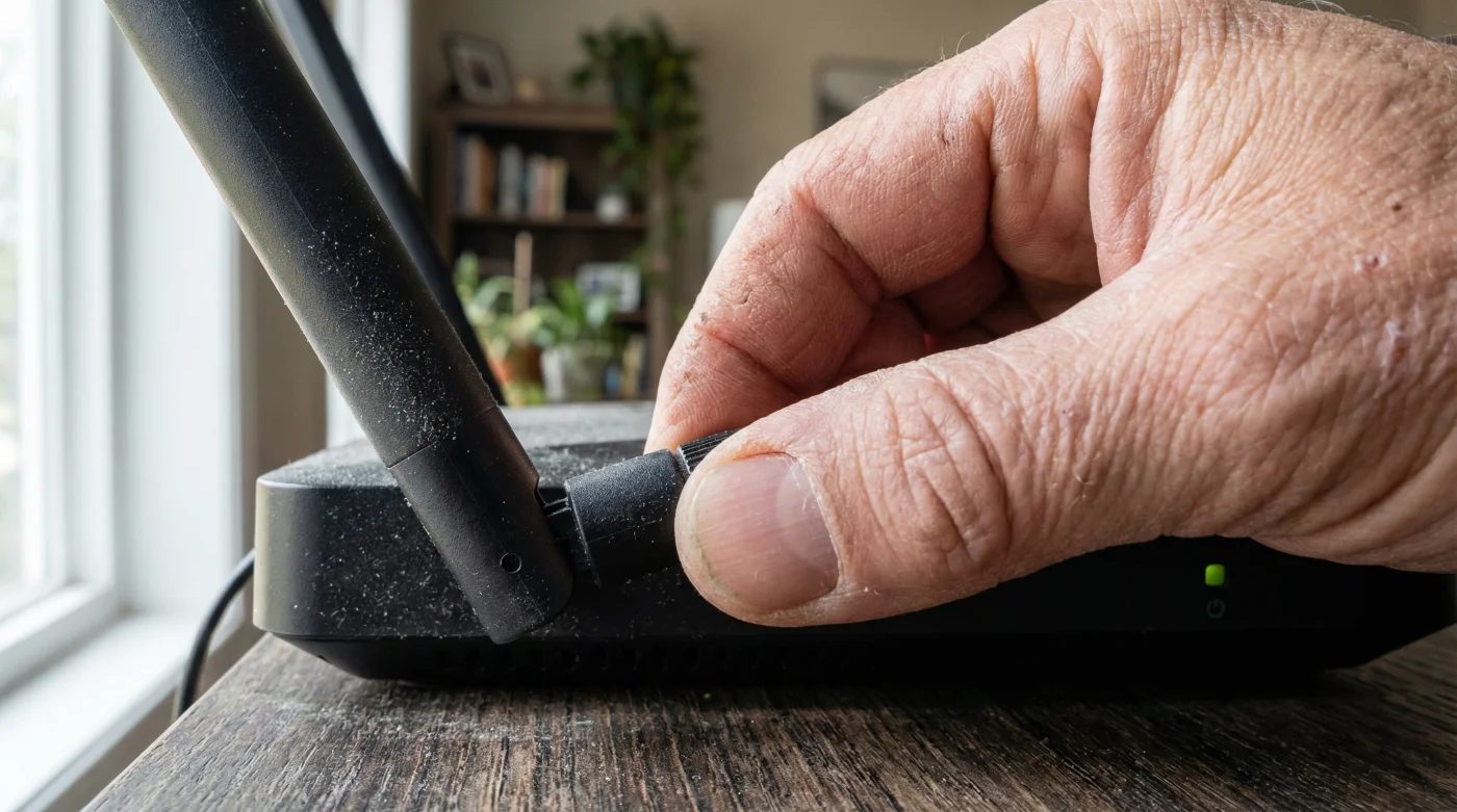 Si tu router tiene dos antenas externas, el error más común es dejarlas ambas apuntando hacia arriba. La técnica correcta es formar una letra L. Deja una antena apuntando directamente hacia el cielo y acuesta la otra de forma horizontal, paralela al suelo. De este modo, garantizas que la señal se propague tanto en el plano vertical para atravesar paredes hacia el segundo piso, como en el horizontal para llegar a los rincones del mismo nivel de manera eficiente.