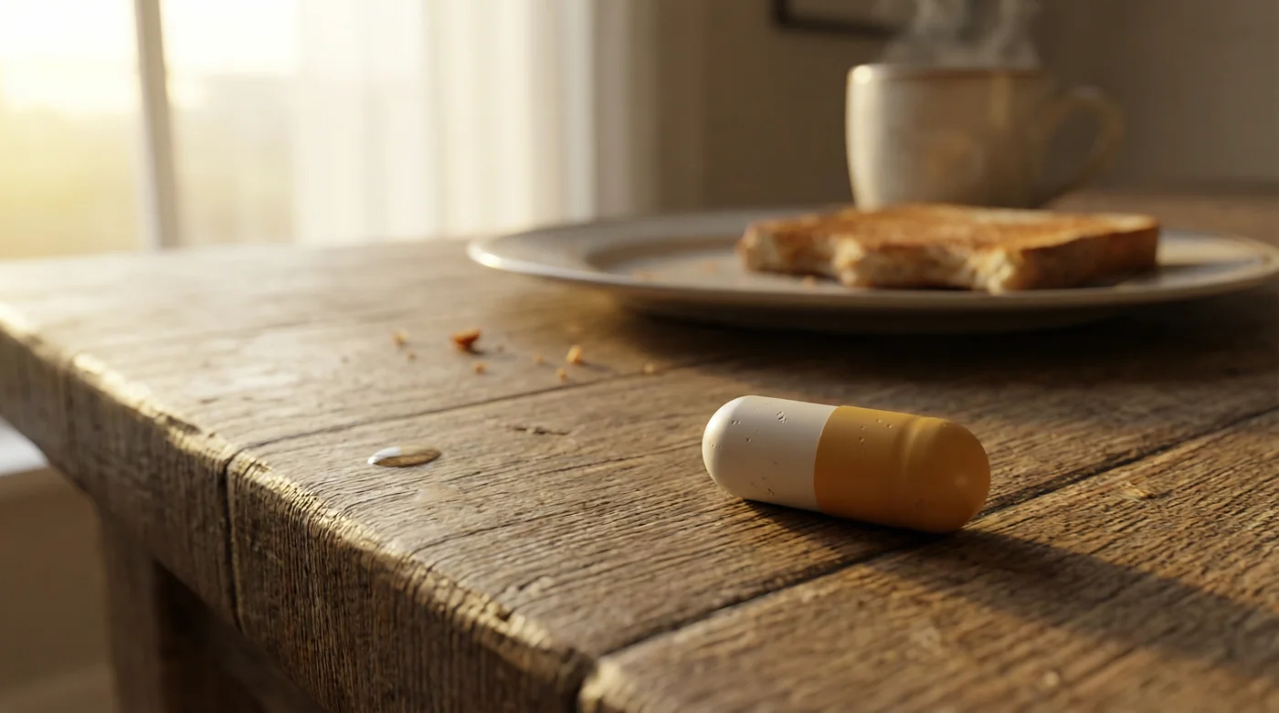 Deja tu blíster de pastillas junto a un vaso de agua al clima. Agua sola, nada de jugos ni leche. Lo primero que debes hacer al abrir los ojos, incluso antes de revisar las notificaciones del celular o quitarte las cobijas, es sentarte y tomar tu cápsula. Ese es el minuto cero de tu nueva tranquilidad digestiva.