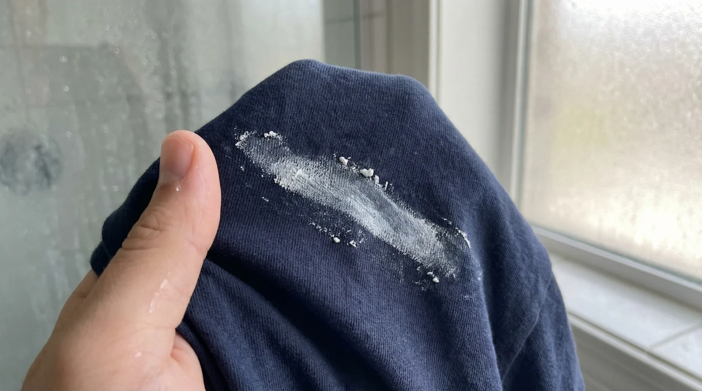 Piensa en tu piel como si fuera un lienzo. Aplicar un antitranspirante sobre una axila recién bañada, que aún conserva humedad microscópica en los poros, es exactamente igual a intentar pintar sobre una pared que no se ha secado por completo. La pintura no se adhiere; simplemente resbala, se mezcla con el agua y termina en el piso. En este caso, tu camisa oscura es el piso. El ingrediente activo que evita el sudor, generalmente sales de aluminio, necesita entrar al conducto de la glándula sudorípara para funcionar. Si hay agua de la ducha, o si tu cuerpo ya empezó a transpirar por el vapor del baño, la sal cristaliza en el exterior. Jamás entra. Se queda en la superficie de tu piel esperando a que una tela oscura la barra y la convierta en una mancha calcárea.