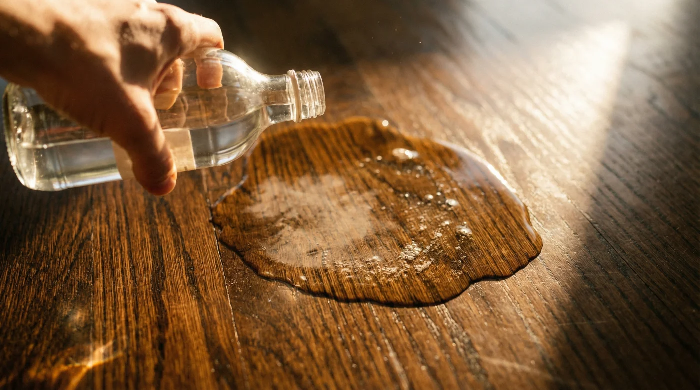 Incluso diluido, el vinagre sigue siendo un ácido que debilita el poliuretano a nivel microscópico. Es mejor evitarlo por completo en superficies de madera tratada.