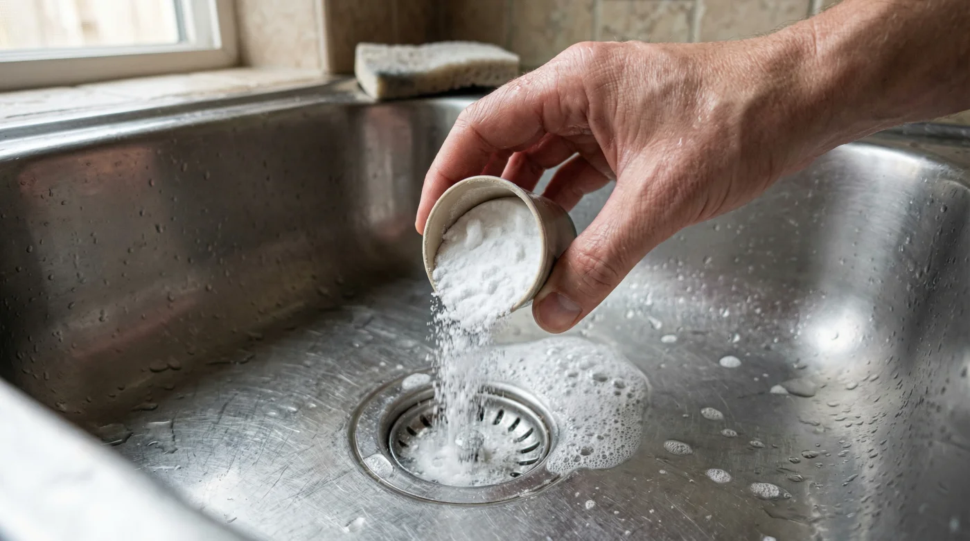 Escucharás un siseo inmediato, fuerte y satisfactorio. Esa es la reacción ácido-base rompiendo la mugre. Inmediatamente, tapa el desagüe con un tapón o un trapo húmedo. Al taparlo, obligas a que el gas de dióxido de carbono viaje hacia abajo, empujando el tapón de suciedad en lugar de escapar inofensivamente hacia el techo de tu cocina.
